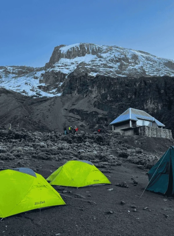 Today’s trek takes you to the base of the challenging summit climb. Climb gradually, then cross the lunar desert of the “Saddle” between Mawenzi and Kibo. Navigate rocky terrain and scree slopes as you make your way to the Kibo Hut, your final campsite before the summit push.